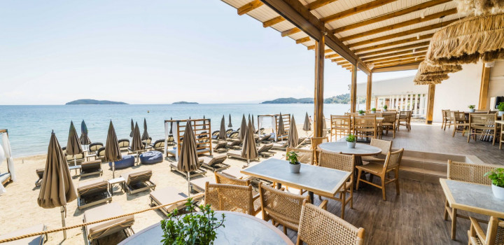 This stylish hotel is ideally situated for a relaxing escape on the tranquil island of Skiathos. It’s just a few steps away from the soft golden sand and crystal clear water of Megali Ammos beach, and a 10-minute stroll from the charming centre of Skiathos Town – so whether you’re in the mood for chilling or exploring, you’ll easily be able to do so from here.